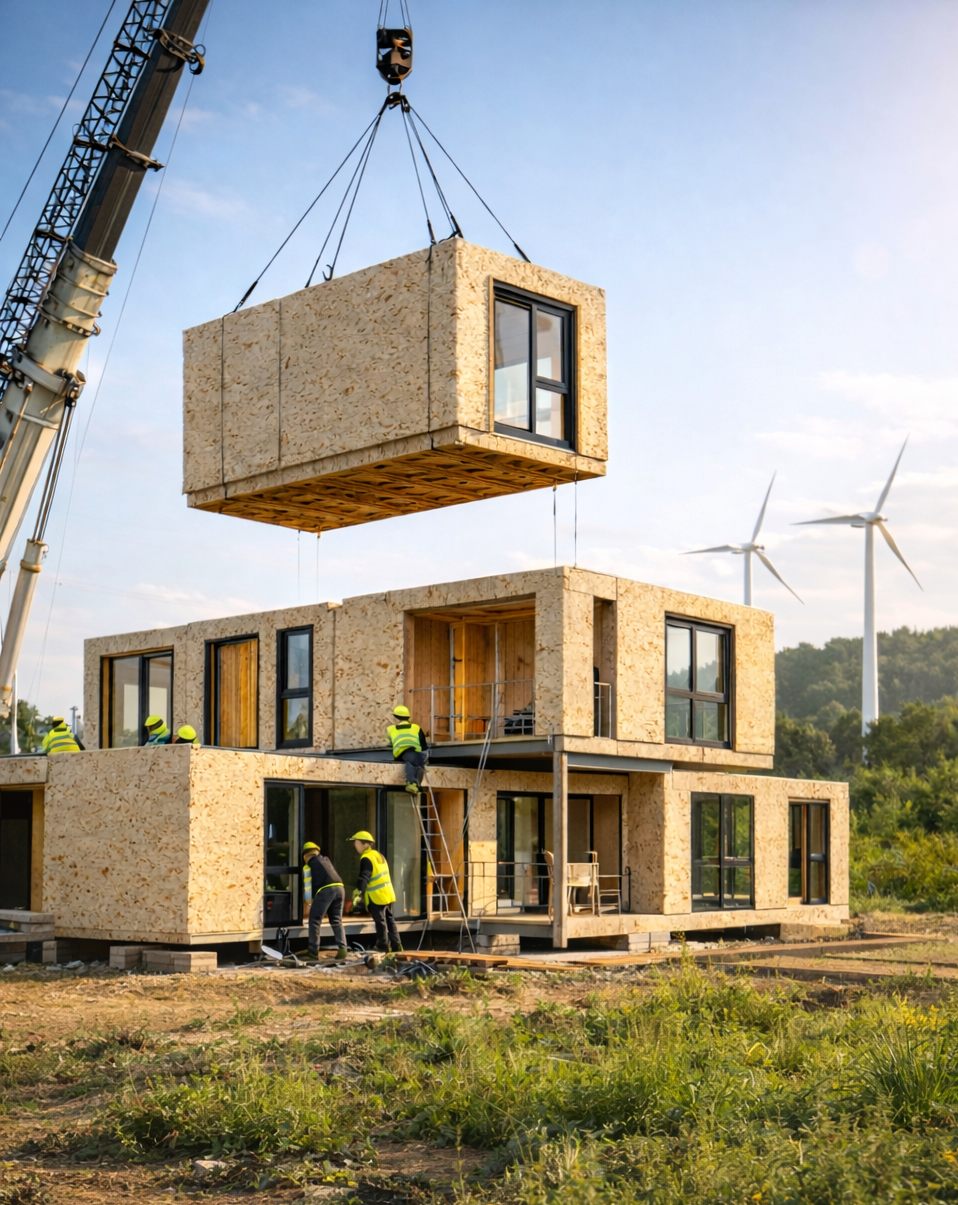 Pareti prefabbricate modulari bio-based che riducono tempi di costruzione, emissioni di CO₂ e costi, garantendo elevate prestazioni energetiche e piena conformità normativa.